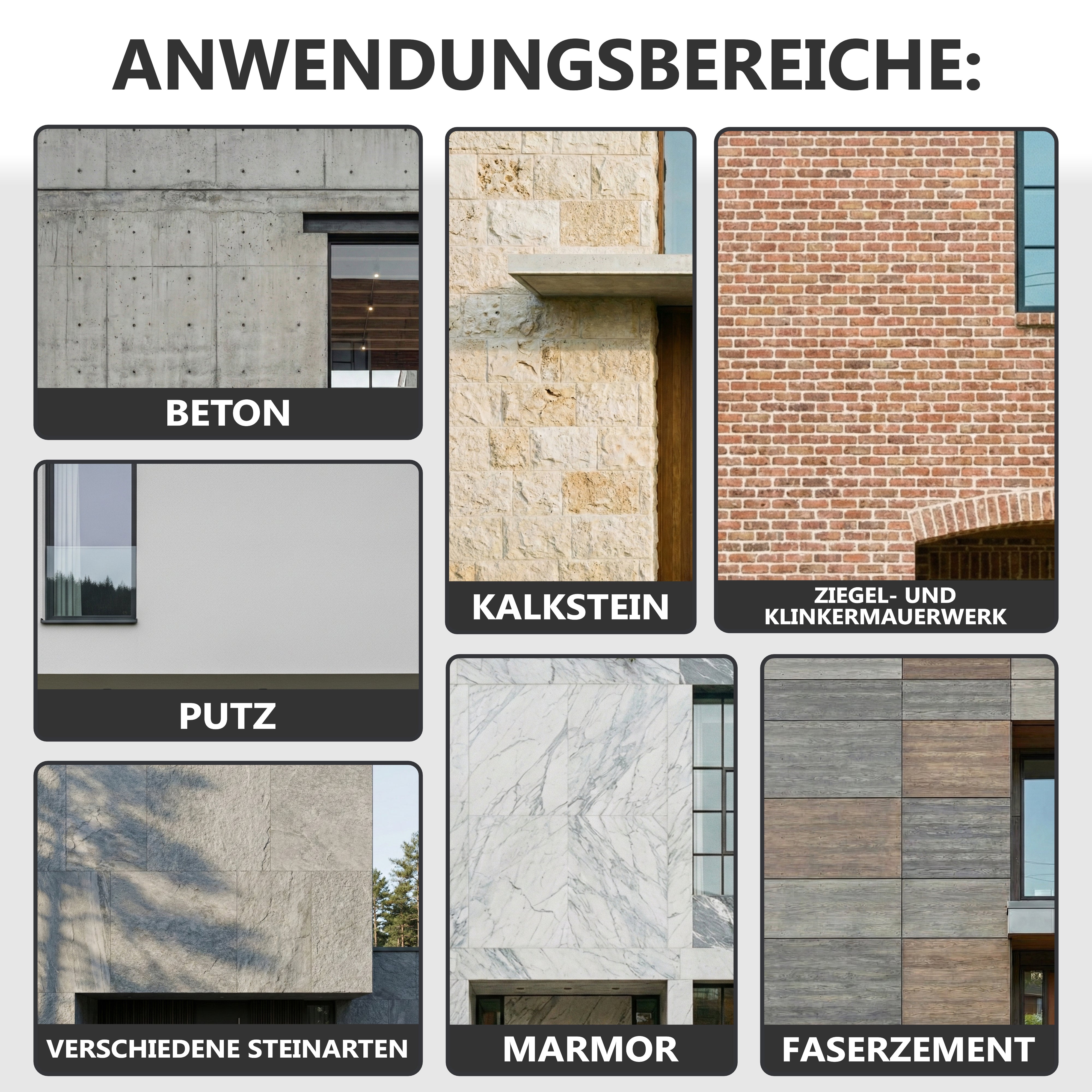 • For masonry materials such as clinker masonry, brickwork, natural stone, exterior plaster, concrete, fiber cement or limestone