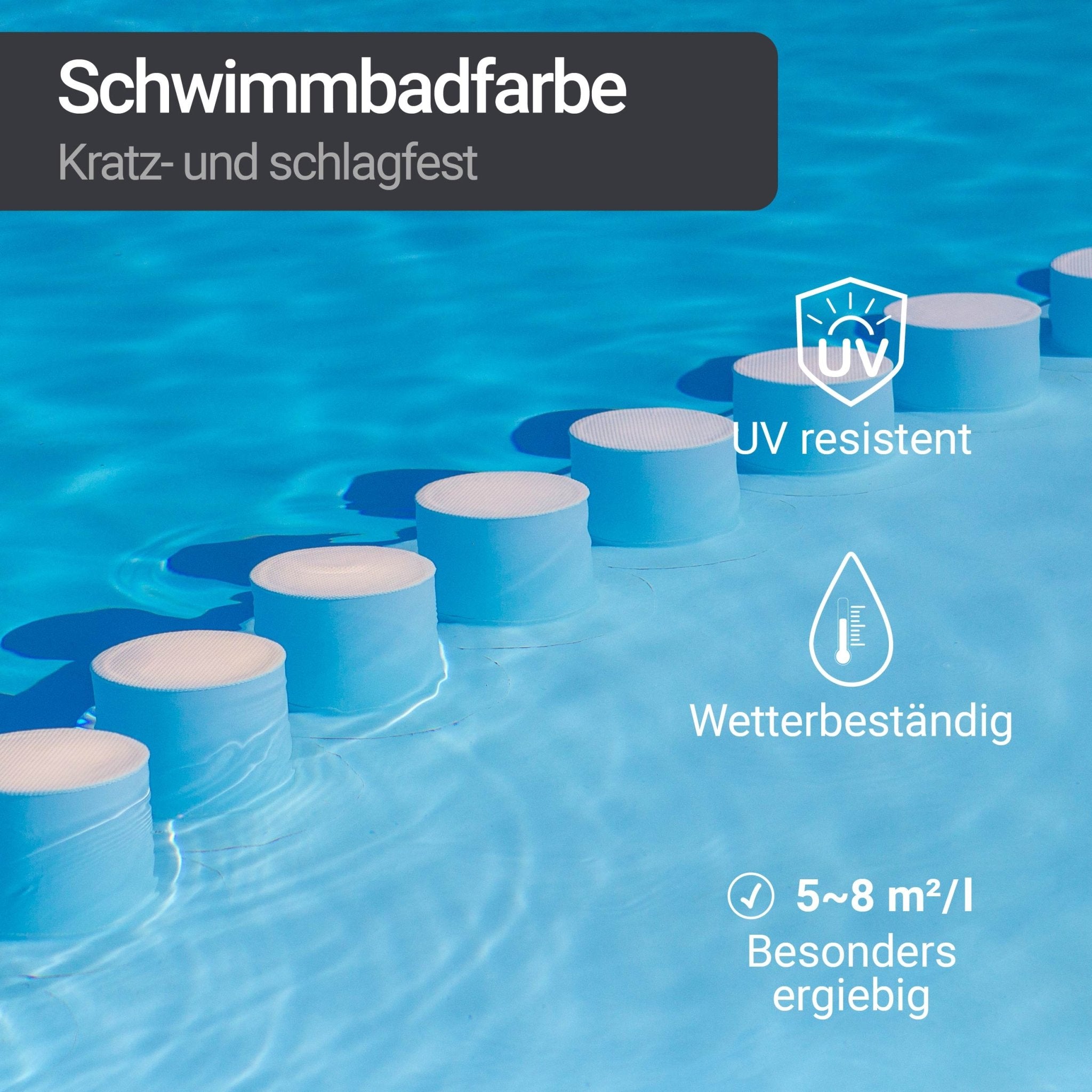 • Suitable for repainting as well as for pool refreshment or pool renovation.