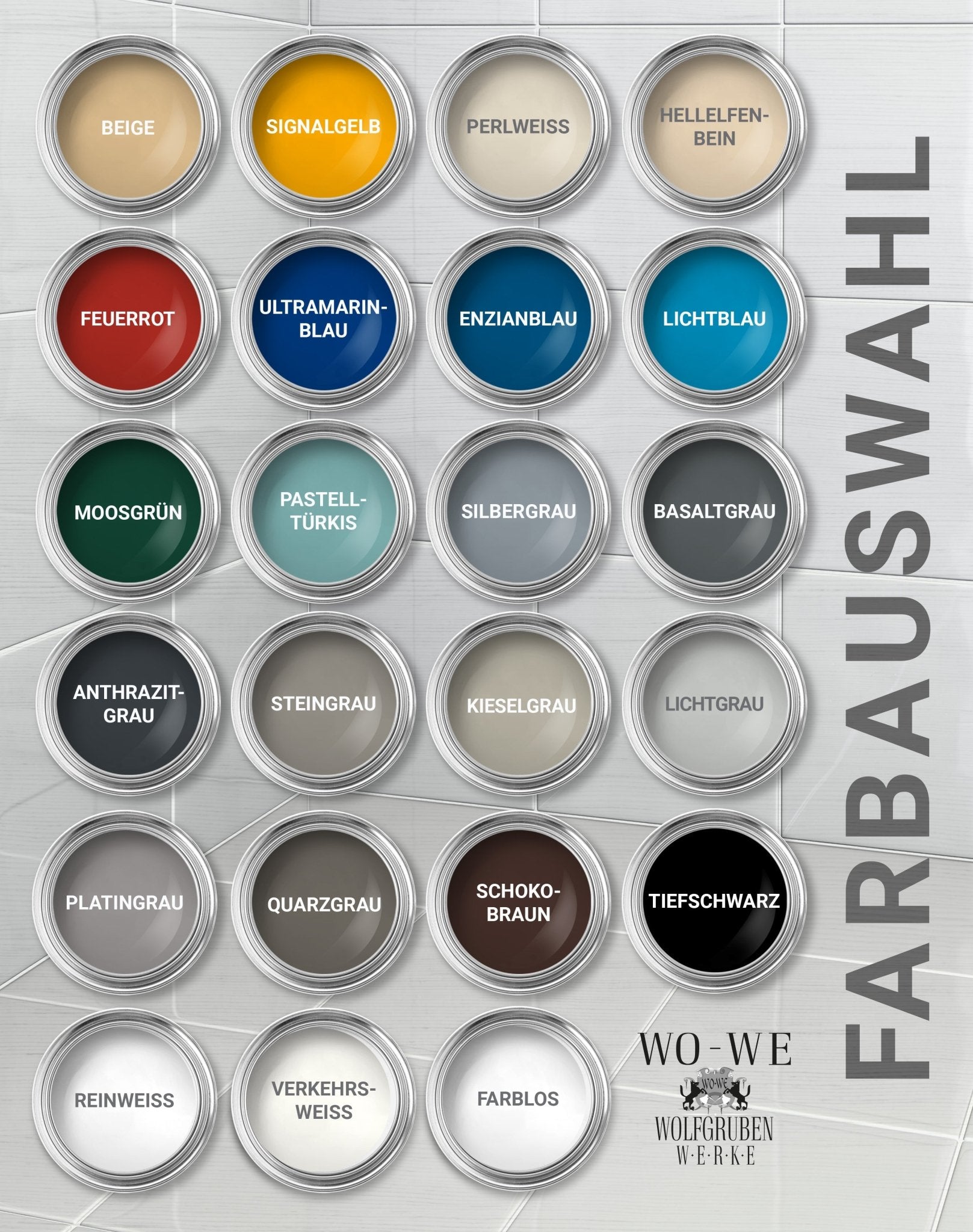 Depuis plus de 20 ans, Wolfgruben Werke est synonyme de peintures, vernis et revêtements de haute qualité « Made in Germany ». Avec plus de 500 000 clients satisfaits, nous sommes l'un des principaux fournisseurs de systèmes de revêtement professionnels pour l'intérieur et l'extérieur. Nos produits se distinguent par leur durabilité, leur pouvoir couvrant élevé et leurs propriétés d'application optimales. De nombreuses solutions sont également certifiées par l'Institut pour la protection des consommateurs (IWV), garantissant ainsi une sécurité et une qualité optimales pour vos projets. Qu'il s'agisse de revêtements de sol, de peintures pour toitures, de vernis pour bois ou de revêtements de baignoires, vous trouverez chez nous une qualité de marque certifiée et fiable.