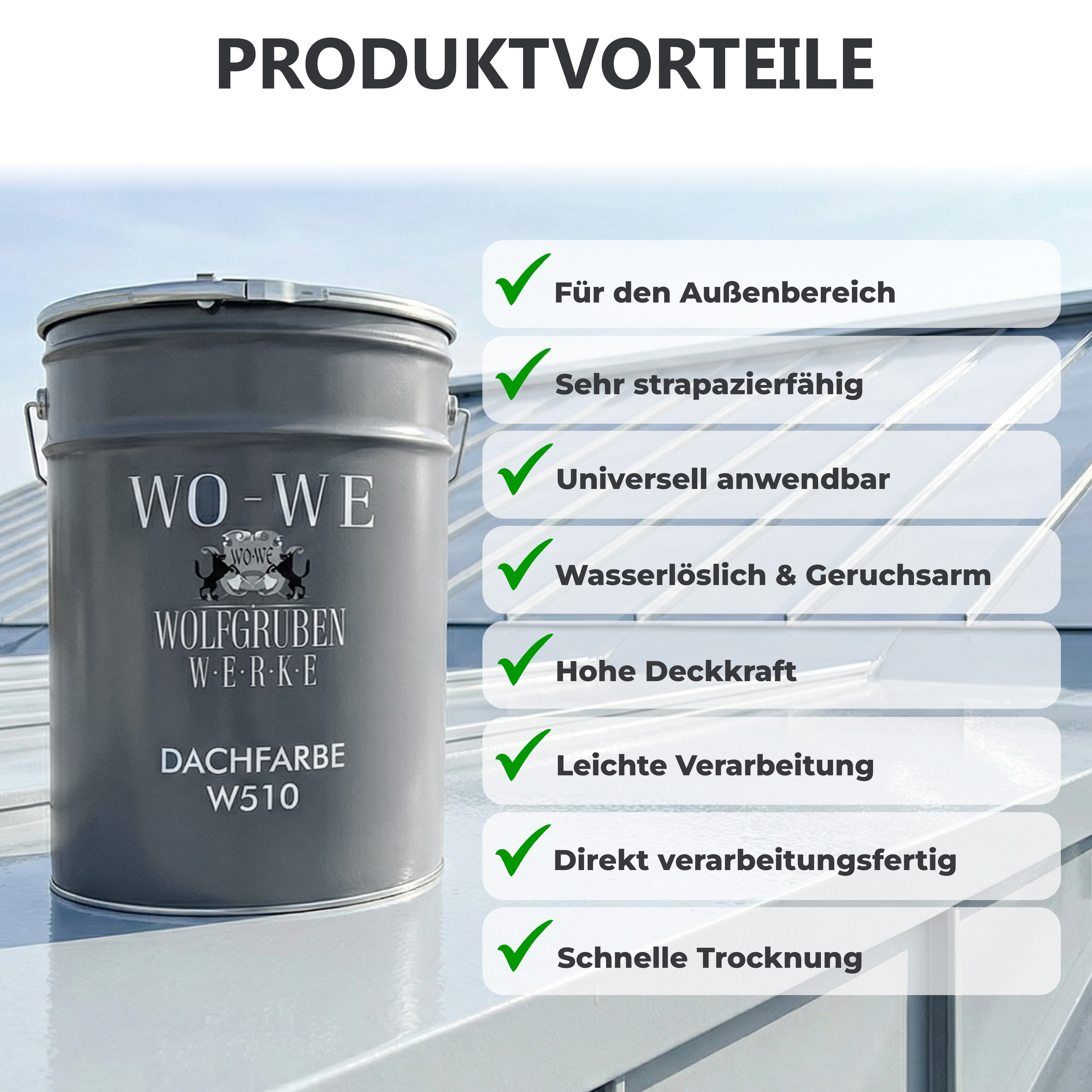 Depuis plus de 20 ans, Wolfgruben Werke est synonyme de peintures, vernis et revêtements de haute qualité « Made in Germany ». Avec plus de 500 000 clients satisfaits, nous sommes l'un des principaux fournisseurs de systèmes de revêtement professionnels pour l'intérieur et l'extérieur. Nos produits se distinguent par leur durabilité, leur pouvoir couvrant élevé et leurs propriétés d'application optimales. De nombreuses solutions sont également certifiées par l'Institut pour la protection des consommateurs (IWV), garantissant ainsi une sécurité et une qualité optimales pour vos projets. Qu'il s'agisse de revêtements de sol, de peintures pour toitures, de vernis pour bois ou de revêtements de baignoires, vous trouverez chez nous une qualité de marque certifiée et fiable.